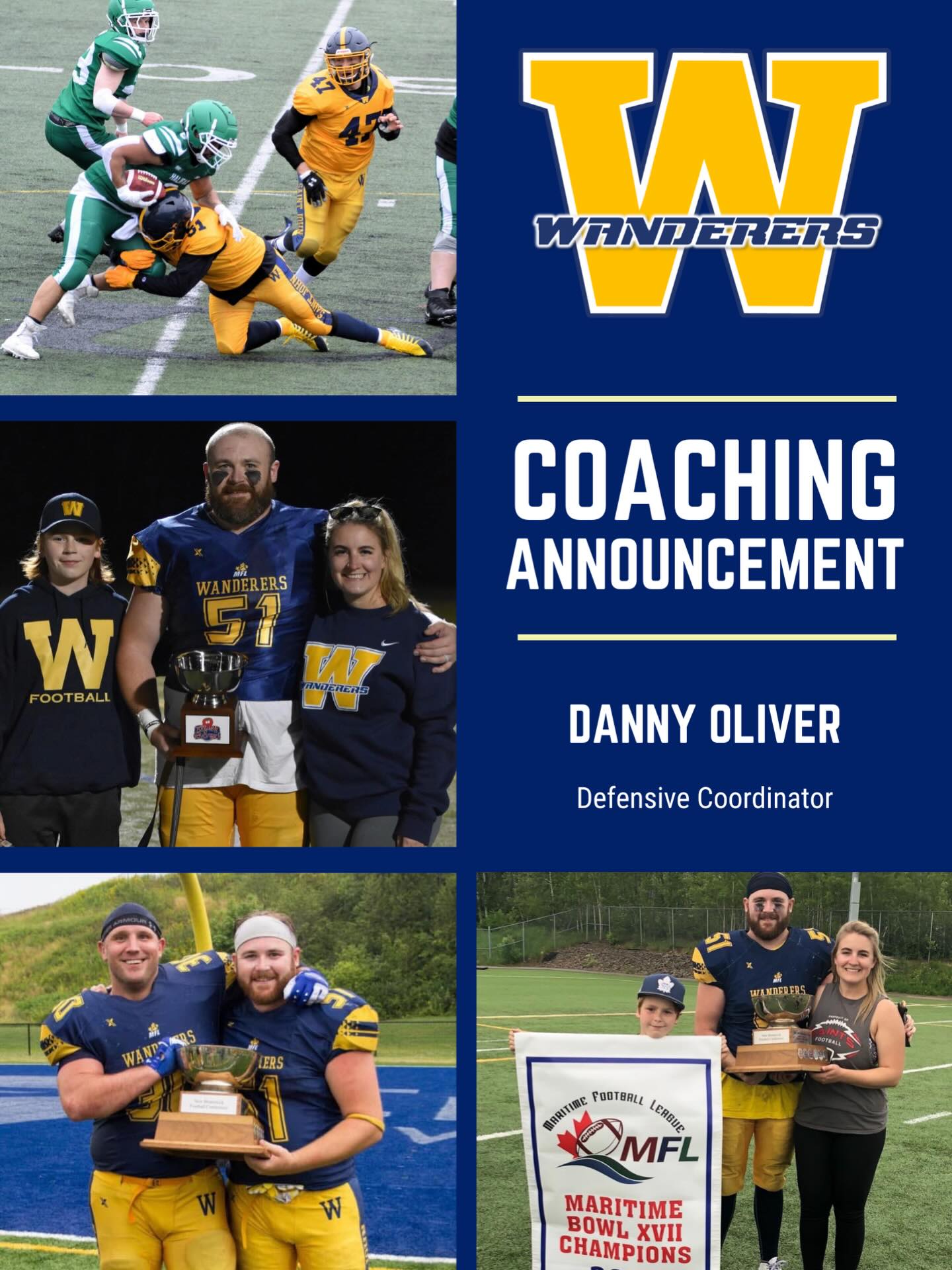 The Saint John Wanderers are proud and excited to announce that Danny Oliver will step into the role as the Defensive Coordinator.
